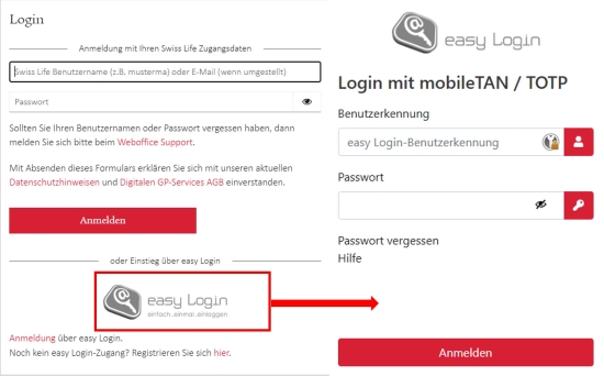 Voraussetzung: Sie haben einen easy Login Account und diesen