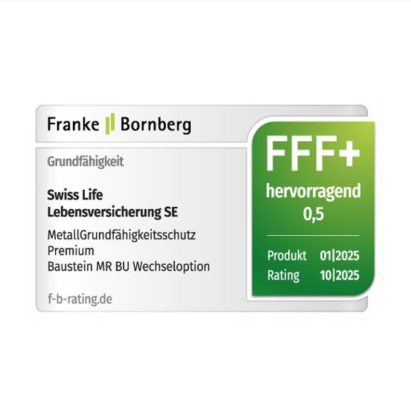 Das Fachmagazin Focus Money bewertet in der Ausgabe 15/2025 Swiss Life mit der Auszeichnung „Höchste BU-Kompetenz“. Die Auszeichnung wurde im Rahmen eines umfangreichen Vergleichs von BU-Versicherungen und deren Anbietern vergeben.